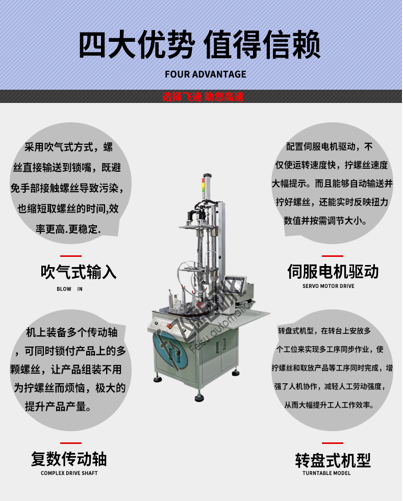 歡迎光臨飛速自動化官網(wǎng),專注自動鎖螺絲機(jī)設(shè)備研發(fā)、生產(chǎn)、銷售! 關(guān)于我們| 視頻展示| 聯(lián)系我們
